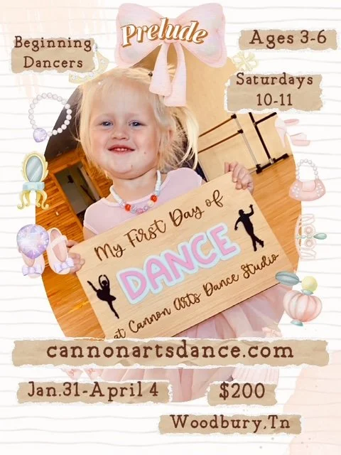 Prelude registration is now open. It is an introduction to dance for the Prelude beginning dancer ages pre-k through kindergarten (3-7) and includes exploring the basic elements of dance through creative movement. This non recital track course runs on Saturdays from 10-11, January 31-April 4, ages 3-6, Xan Barrell, instructor. Cost is $200. Please click the blue registration button below or if you are a returning family, you can login to your parent portal already established to register. Please email cannondance1@gmail.com for questions.